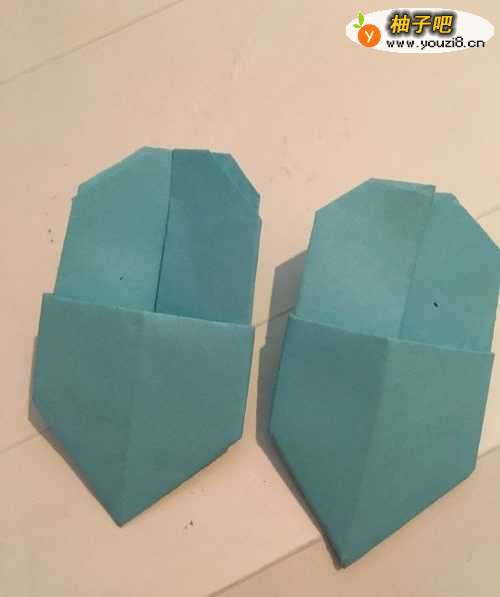 6第六步 整理完之后 拖鞋底的两片向里匀一下 两个尖折向背面 然后再折叠一只就行了