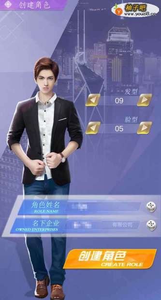 我们进入游戏,选择自己的人物发型,脸型,填写自己的姓名,并为自己的公司取一个名字。