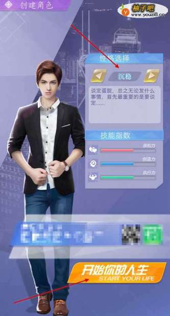 2创建角色成功后,我们选择自己的性格,然后开始我们的崭新人生吧!