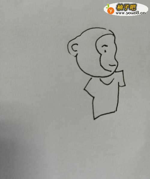 2第二步,然后画出小猴子脸上的花纹,注意小猴子眼睛、鼻子和嘴巴的画法。