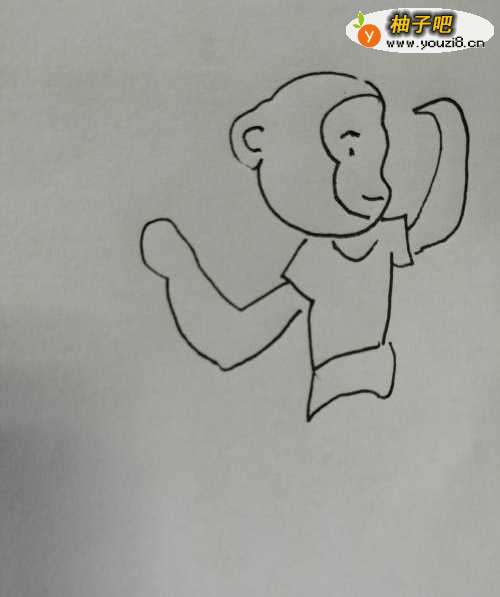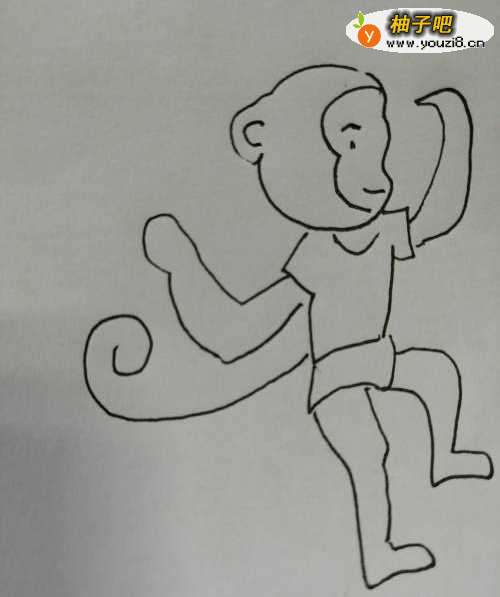 3第三步,接着继续画出机灵的小猴子的身体,注意小猴子长长的手臂的画法。