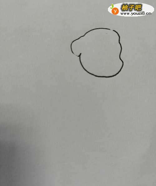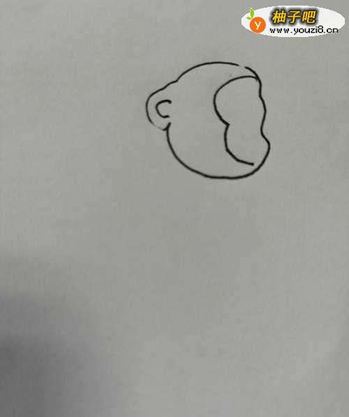 第一步,我们先把小猴子的头画出来,注意小猴子耳朵细节的画法。
