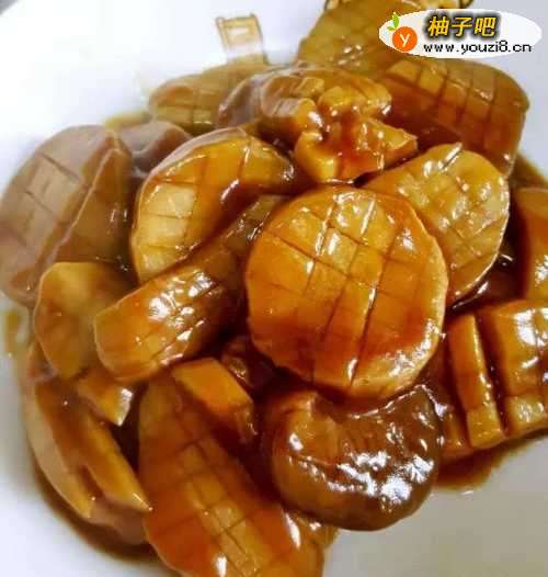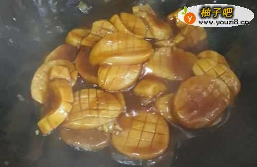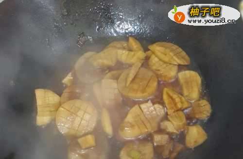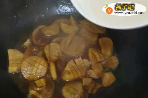 6如果汁少,可以加些清水的,与杏鲍菇基本齐平即可,盖好锅盖,小火炖个5分钟左右
