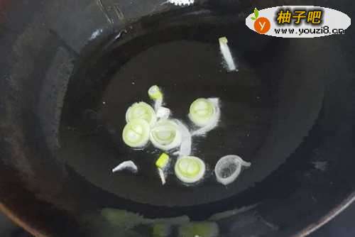 4开火,将锅中倒入油,放葱花,炒出香味