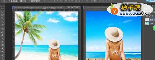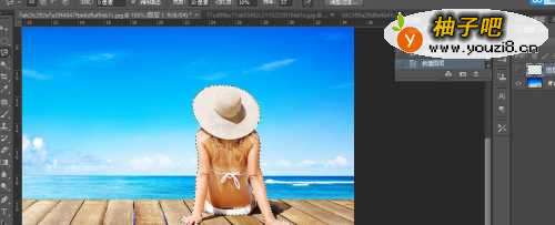4选择“移动”工具,将选区移动到“风景”图片上,并按“ctrl+T”键,调出变换框,将其调小,并移动到相应的位置后,去掉选区,如图:
