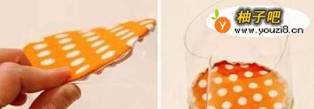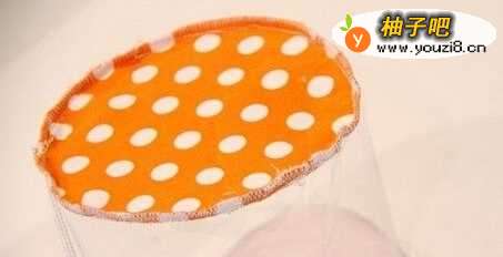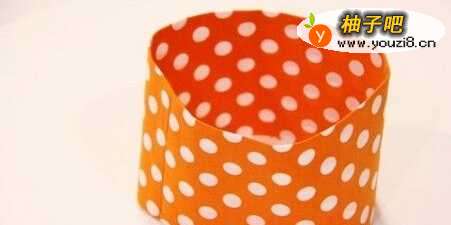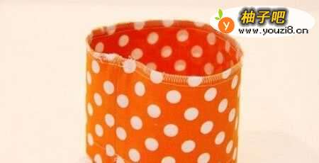 4把带胶衬布热熨到2块圆布的反面,将塑料片卷成管状,缝合两端,留1/4英寸缝份。