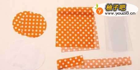 2剪2块圆形布料,2块带胶衬布,1块塑料片,1块上方布料,1根束口绳布料