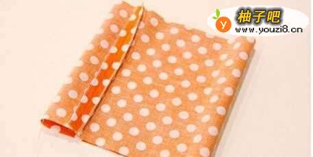 9将上方布料下拉对折,布料毛边底部对齐,熨平。