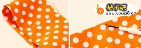 11将缝合的布料毛边与塑料片管上部对齐缝合,留缝份。修正边缘,并滚边。