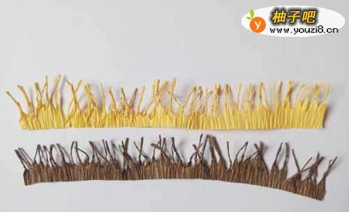 4剪2.5cm*20cm的棕色纸和黄色纸。