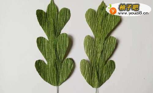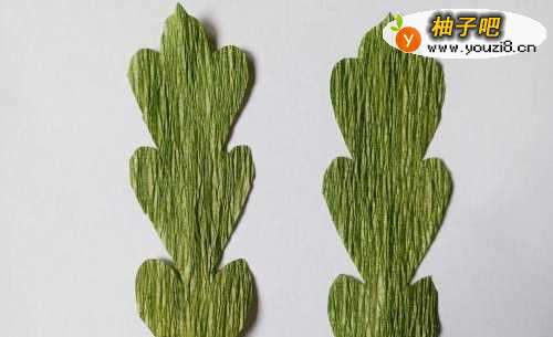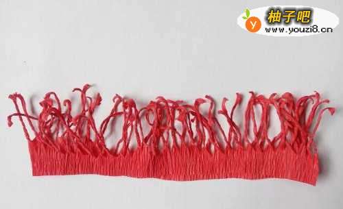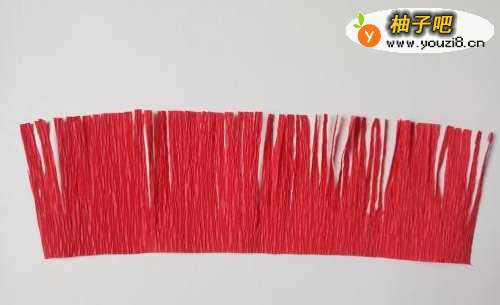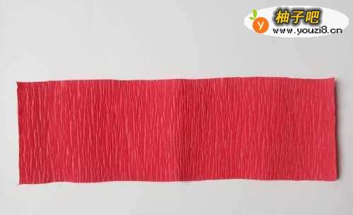 10cm*25cm的红色皱纹纸3张、7cm*30cm的红色皱纹纸2张、绿色皱纹纸一张、2.5cm*20cm的黄色皱纹纸一张、2.5cm*20cm的棕色皱纹纸一张、铁丝一根、花杆一根
