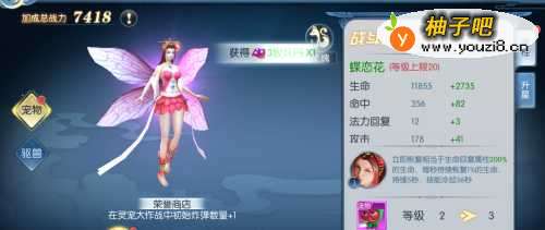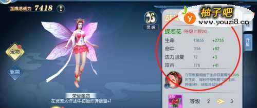 4可以看到当前的宠物属性,以及升级增加的属性
