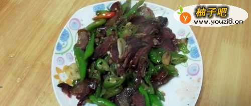5翻炒至辣椒变色,淋少许水、加入料酒提香,翻炒几下即可。