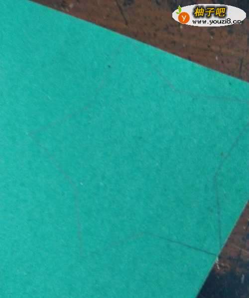 2我们再把折好的粉色彩纸上也画上一个小一些的心形,然后把大的五角星沿着线先行剪下来。我们在五角星上角与角之间画下线,方便好折。