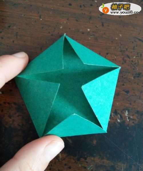 3把五角星的几个角都向上折一下,然后我们把其他的心形图案都沿着线剪下来备用。
