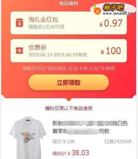 淘礼金是淘宝商品推广者为指定商品添加的。如图所示,该商品有一个0.97元的淘礼金,并且还有一个100元的优惠券!图中所示商品原价为139元,您领取0.97元淘礼金和100元优惠券后,购买此商品提交订单时,您只需要付款139-100-0.97=38.03元即可!
