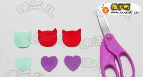 9剪出大小为3*3CM的猫脸和心形不织布。