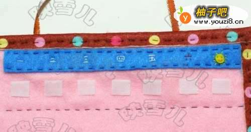 在上面绣出表示星期的数字和表现星期天的太阳。(或者可以直接用笔写上)