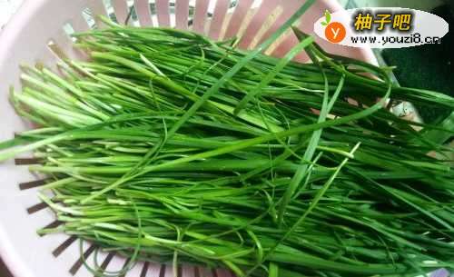 先洗净韭菜,控一会水分后切段。绿豆芽洗净控干。香葱切段,姜切丝。