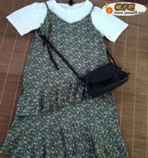 4然后第三个是很有层次的吊带裙,很多服装店都是白体恤+吊带裙这样搭配,小编配了黑色的斜跨包,看起来很可爱的感觉