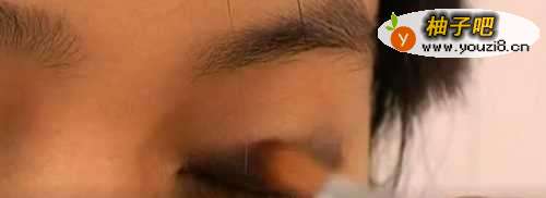 用眼影棒沾取黑色或灰色眼影,在图中位置涂上比较浓的一层,注意要涂抹均匀。