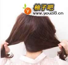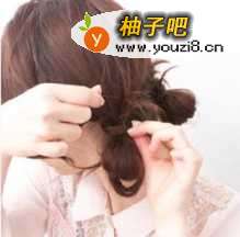 按照图中所示的方法将头发用手随意的侧分为两部分。