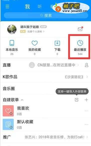 8此时打开最近播放的列表,就可以看到以前播放歌曲惹肤艺的记录了