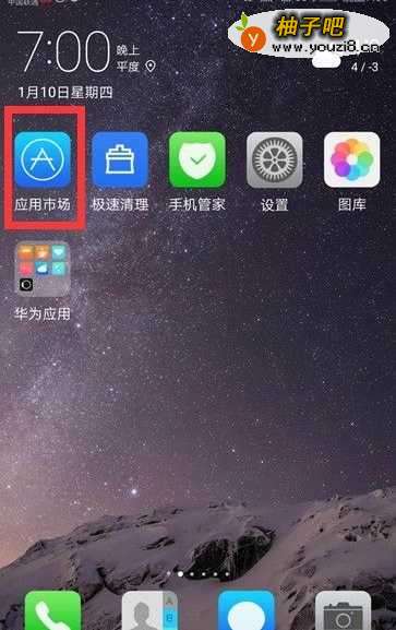 打开手机界面,罪盲找到“应用市场”图标