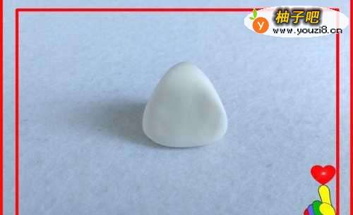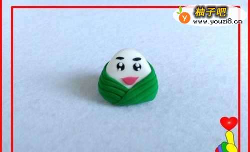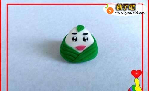 10取红色彩泥适量,制作“粽子”的嘴巴。
