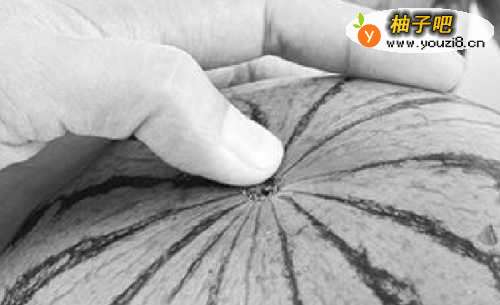 一般水果的端头都有蒂,从蒂的大小也可以看出西瓜的好坏,一般来说,选底端的蒂越小的话果皮会越薄,那相对的果肉就会越多。