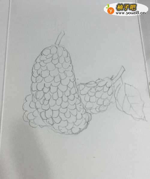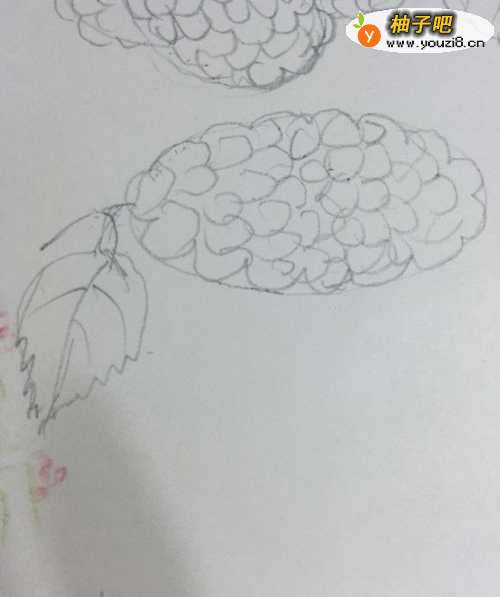 3第三步 画完第一个 再画上第二个桑葚 和它的叶子