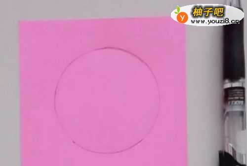 2然后准备一个剪刀,备用,用准备的笔在纸上画出一个圆形,如下图。