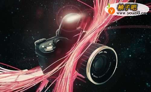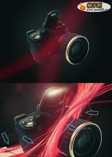 25在这一步,除了要让线条更闪耀更具有3D感,同时也要为相机的边缘投光。