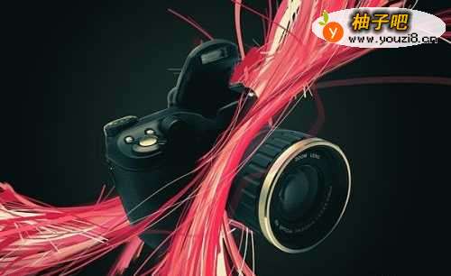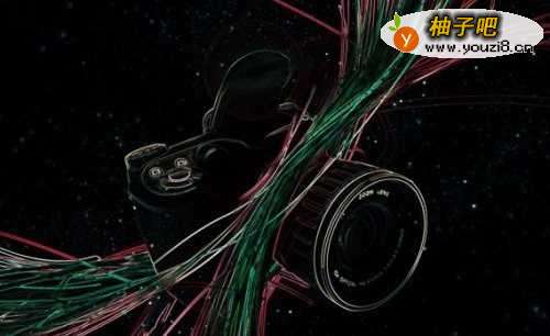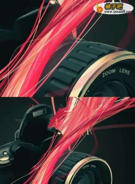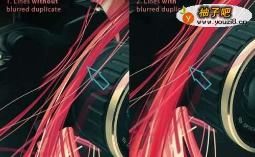 12在照相机吐槽上,创建一些线条,但也别忘了为一些复制的线条添加模糊。如下图。