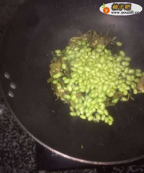 4再将豆子沥干水分,倒入锅里一起炒;