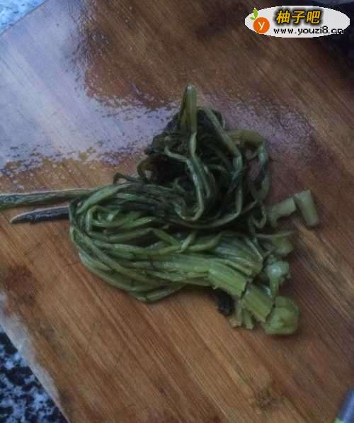 2将咸菜洗干净,切小块;