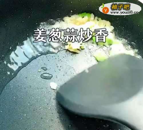 5●第五步:洗干净锅,擦干之后放入少量清油和姜、葱、蒜炒香。
