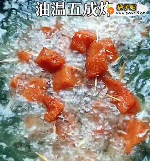 4●第四步:放入油锅炸中火炸至金黄捞出。