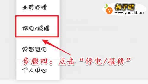 4点击“我的用电”功能菜单中的“停电/维修”选项。