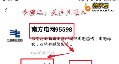 2完成账号登录以后,关注且进入“南方电网”公众号。