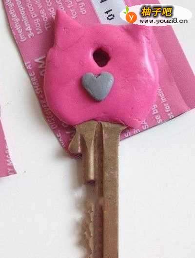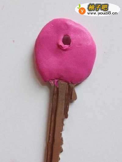 2首先,用粘土包裹住钥匙上围,尽量贴合,捏的圆圆的。