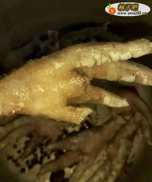 7第七步就是把炸好的鸡脚和配料一起放入锅里,炖上半小时或一小时,喜欢吃得烂点的可以炖久点。越炖越有味哦!