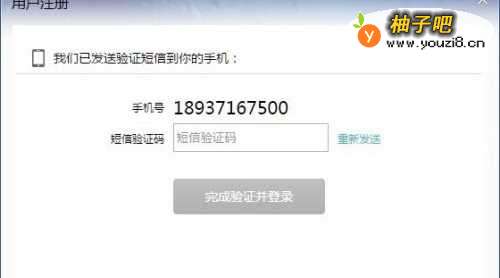 6填写手机接收到的验证码,完成手机注册。