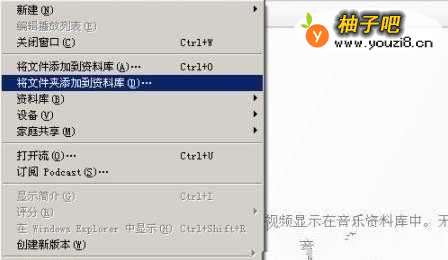 2然后,选择菜单栏的“文件”选项中的“将文件添加到资料库”选项,选择要做铃声的歌曲,单击“打开”选项。
