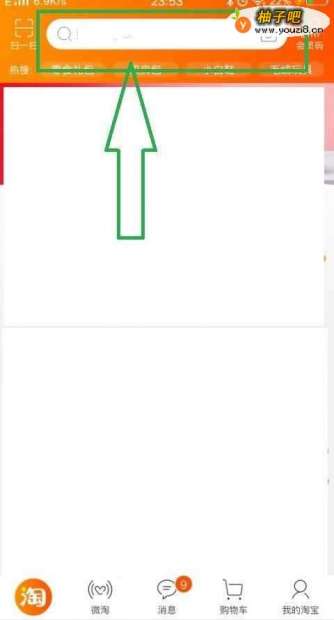 打开手机淘宝首页,在页面上方可以看到搜索栏。