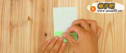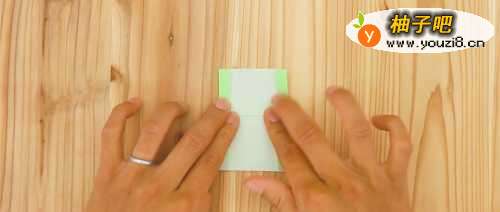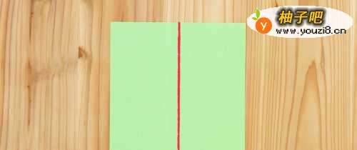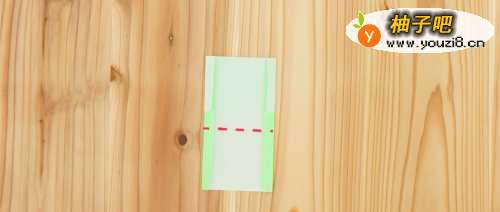 2取其中一半长方形手工纸,将短边重叠对折。