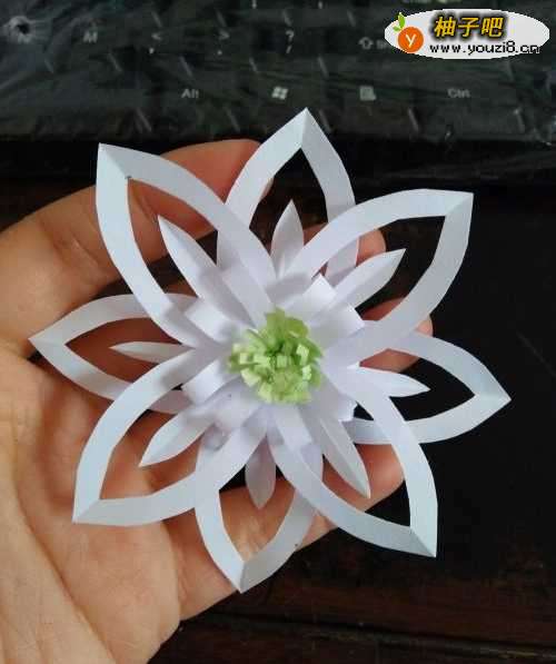 9突然感觉有些太素气,我又做了个带颜色的花蕊粘在中间就好了,漂亮的小白花就做好了,下面是小白花的效果图。