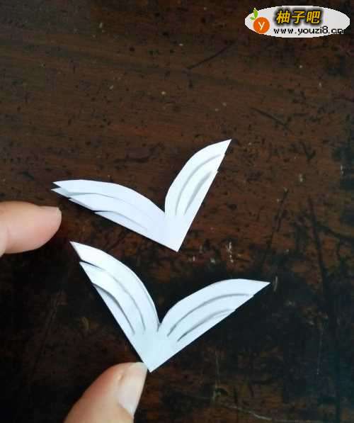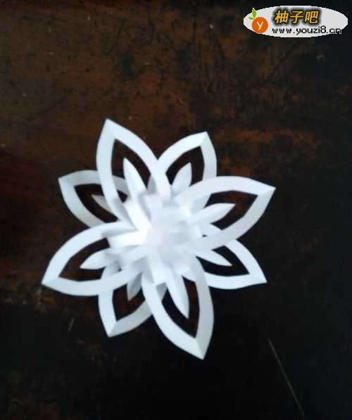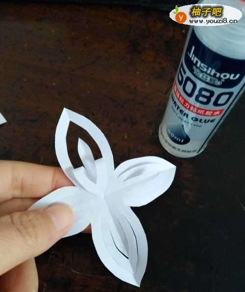 6接下来,我们把花瓣的第二层用胶水粘在中心,其他的按照上边的步骤,同样操作。如图二的样子。