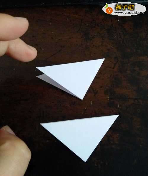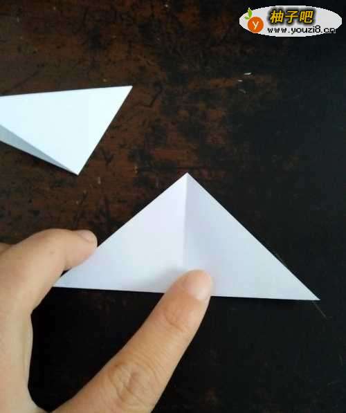 2然后,我们把白纸的对角线对折,然后再对折。如下图所示。