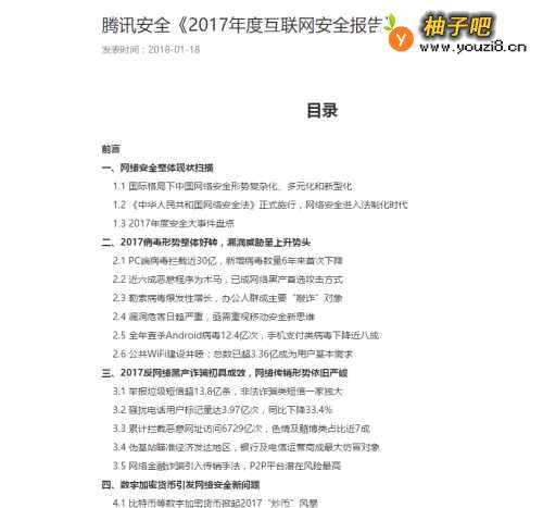 百度网页搜索或者百度文库搜索: 2017年度互联网安全报告,下载打开 腾讯安全2017年度互联网安全报告。